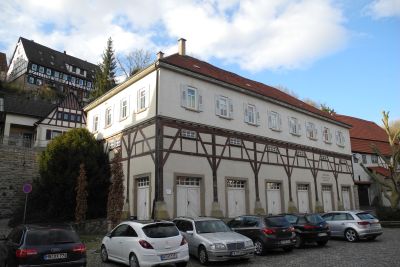 Die Kelter wurde bereits in der Mitte des 15. Jh. vom Schlossberg herunter an ihren heutigen Platz verlegt. Am Gebäude befindet sich eine Hochwassermarke vom 29.9.1732. Der Kelterbetrieb wurde 1985 eingestellt. Das obere Stockwerk der Kelter ist 1872 abgebrannt und wurde 1892 zu einer Lehrerwohnung und Kleinkinderschule ausgebaut. Heute ist im ganzen oberen Stockwerk ein städtischer Kindergarten eingerichtet.